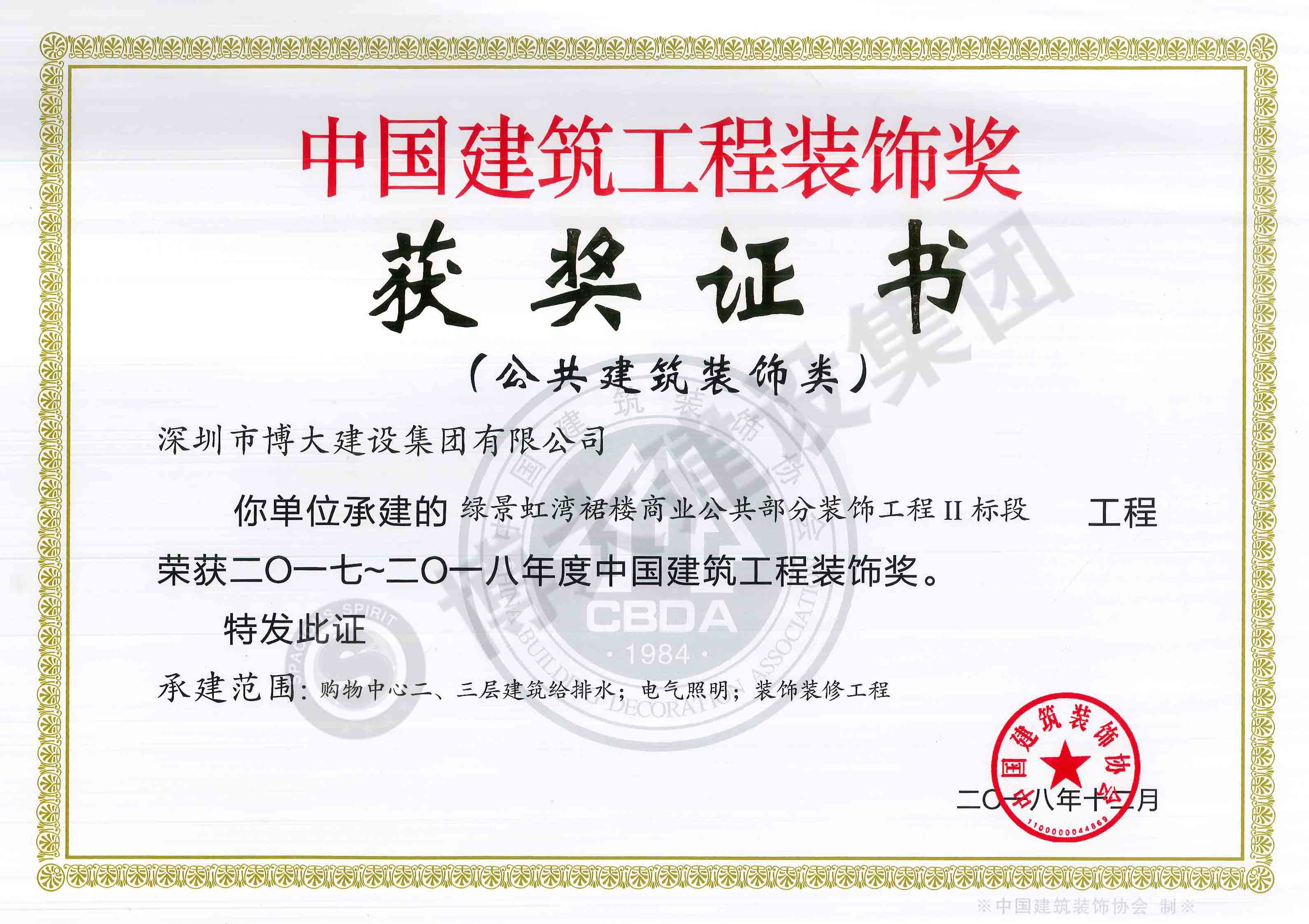 中國建筑工程裝飾獎(綠景虹灣裙樓商業(yè)公共部分-裝飾)