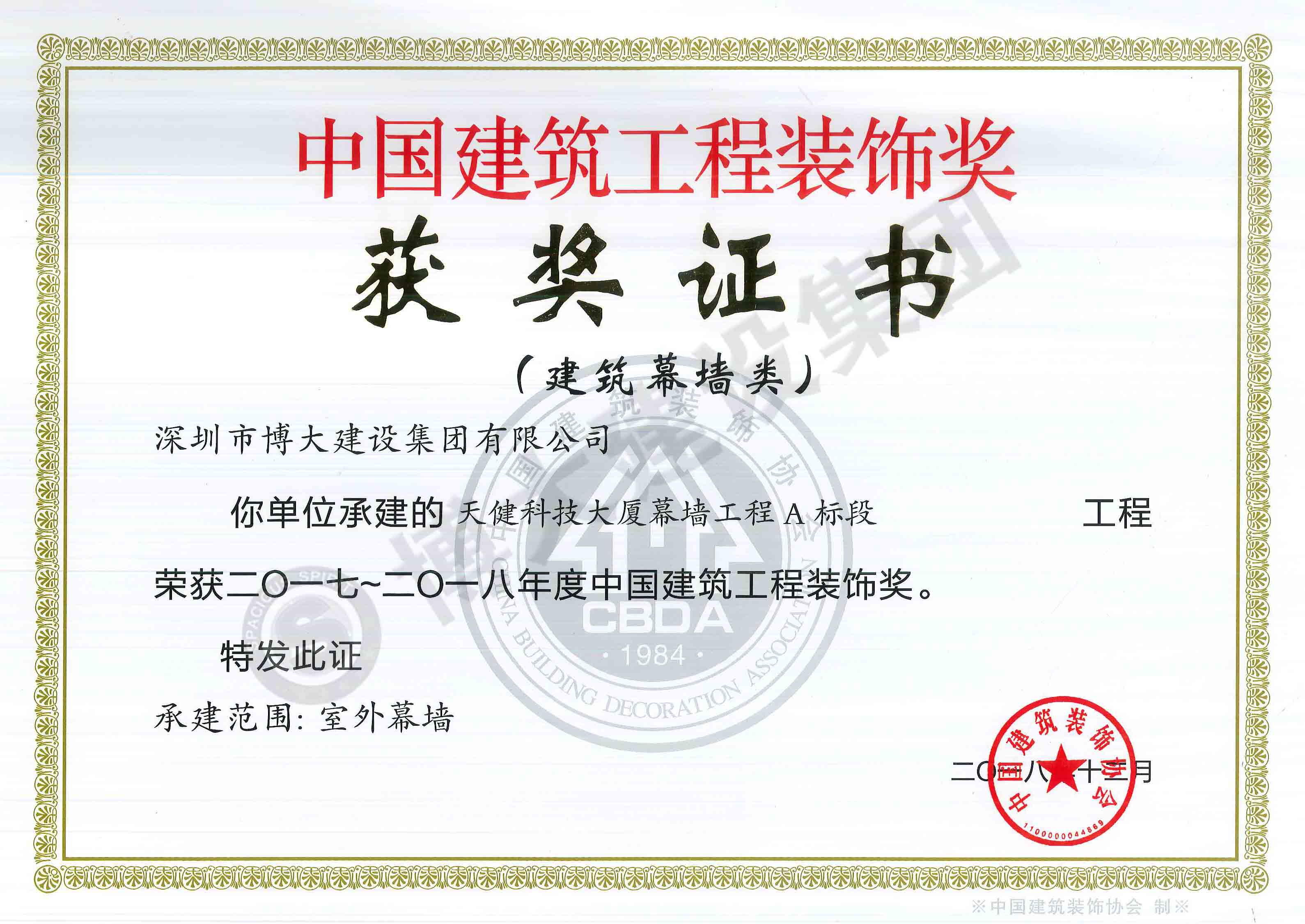 中國建筑工程裝飾獎(天健科技大廈-幕墻)