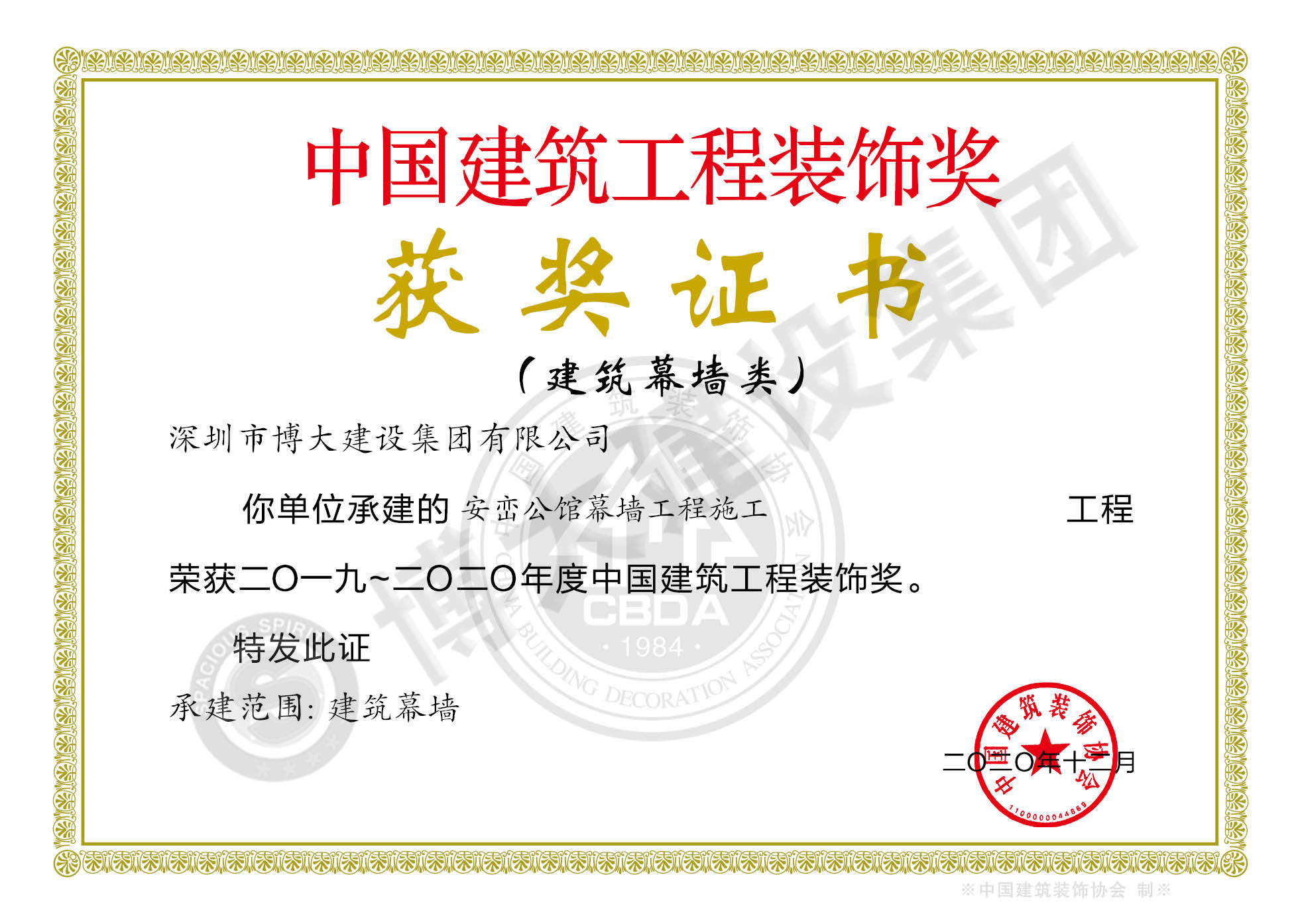 中國建筑工程裝飾獎(安巒公館幕墻施工)