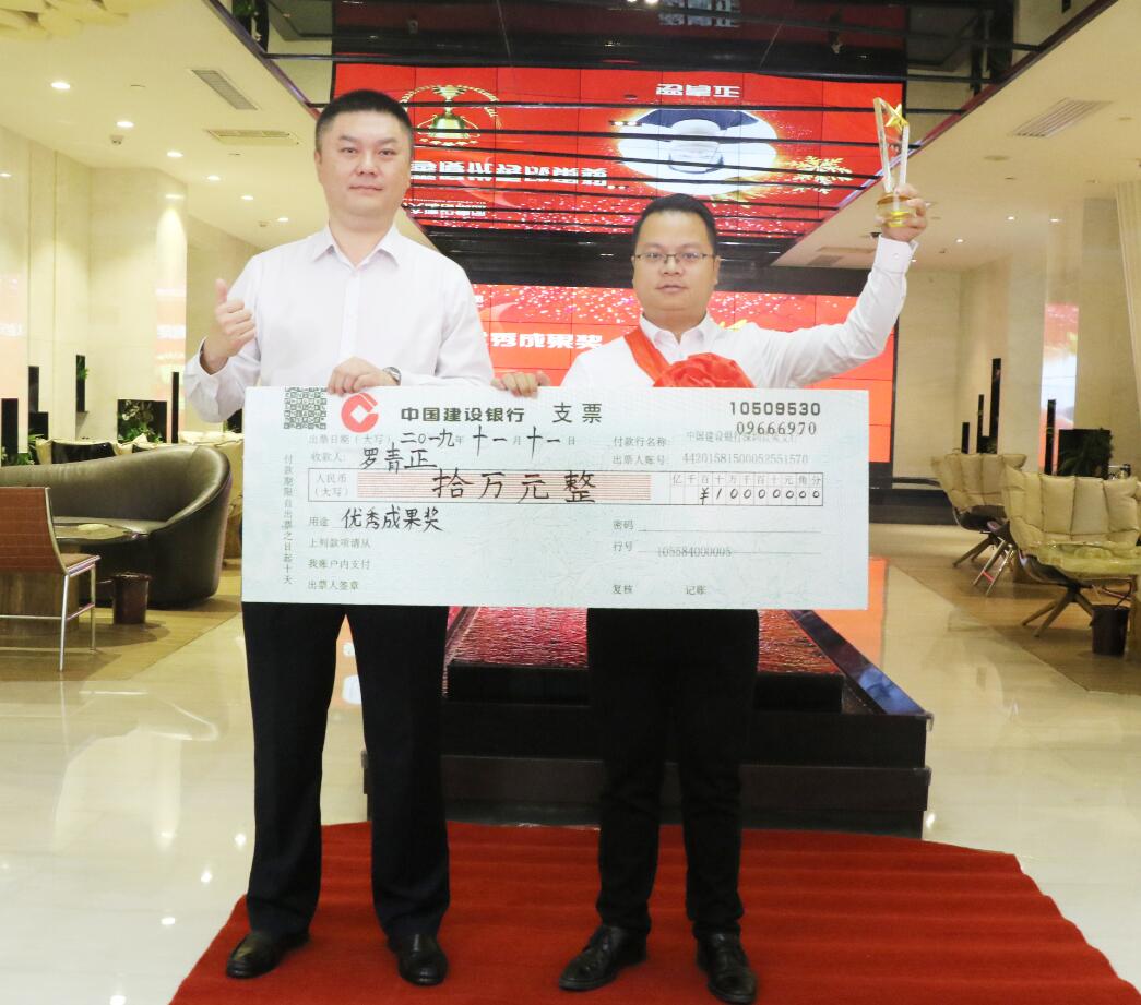 集團副總裁、幕墻設計院院長羅青正執(zhí)行“以設計帶施工”的發(fā)展戰(zhàn)略,憑借高超、專業(yè)的設計服務,在國家技術轉(zhuǎn)移鄭州中心幕墻工程項目的拓展中做出突出貢獻,被授予優(yōu)秀成果獎,獎勵10萬元。圖為黃河副董事長與獲獎者合影留念。